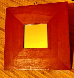 SPECCHIO MALMA ROSSO IN LEGNO NATURALE MISURA 25,5X25,5 cm