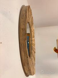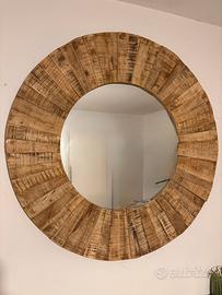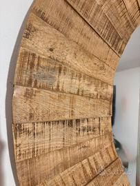 Vendo specchio rotondo, diametro di 120 cm, in legno di mango (Mangifera indica) - India. Diametro specchio 70 cm, le due estremità di legno misurano 25 cm cadauna.
