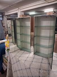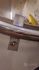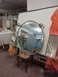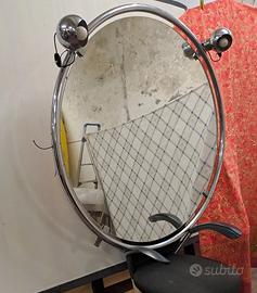 Specchio rotondo in metallo cromato diametro cm.120 con applique a calamita stile modernariato vintage anni 70 piccoli segni di usura + 2 mobiletti bagno con specchi e mensole