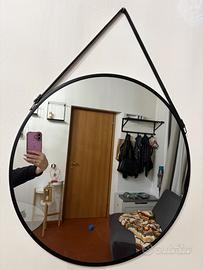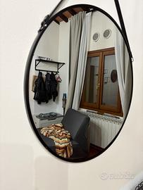 Specchio rotondo diametro 55 cm cornice in ferro nero laccio in cuoio nero marca maison du monde Ritiro in loco