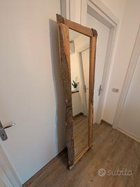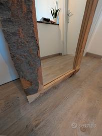 Specchio da appoggio, cornice stile grezzo in legno naturale. Misure cornice 192cm x 58cm, vetro 172cm x 36cm. Eventualmente riverniciabile.