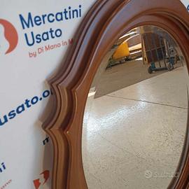 Specchio Sagomato in legno. Struttura in legno intagliato con vetro molato. In
