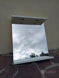 Specchio in ottime condizioni, luci funzionanti con filo elettrico sul dietro. Dimensioni: altezza 80cm larghezza 70cm profondita 16cm mensolina 14cm
