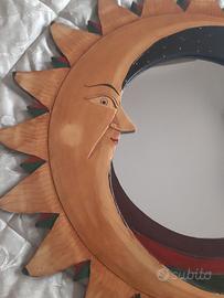 Specchio etnico artigianale legno sole luna stelle Diametro cm 80 Diametro vetro cm 40
