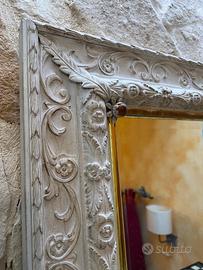 Vendo splendido specchio in stile barocco con cornice finemente intagliata in legno e decoro floreale in rilievo.