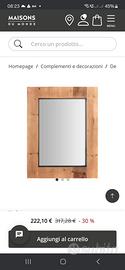Vendo specchio acquistato da Maison du Monde e mai usato. Cornice spessa in legno, perfetto per arredamenti in stile rustico, industriale o boho-chic. Misure: larghezza 70cm, altezza 120cm. Visto il peso e la delicatezza dell'oggetto, offro solo ritiro a mano in zona. Contattatemi per qualsiasi informazione!