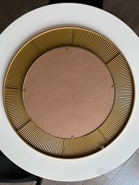 Vendo bellissimo specchio rotondo da parete con diametro di 65 cm e cornice effetto oro lavorato a rilievo, dal design elegante e moderno. Perfetto per ingresso, soggiorno, camera o bagno in quanto dona luminosità all’ambiente.