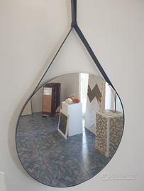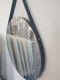 Specchio diametro cm 60 . Cinghia marrone scuro. Prodotto dal design originale e versatile. Ideale per il bagno, arredo entrate, stanze da letto . Materiale nuovo da esposizione. Trasporto escluso. Solo interessati.