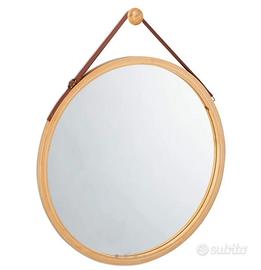 Specchio Tondo da Appendere, Cordino Regolabile, Cornice in Bambù, Moderno, Corridoio & bagno, ∅ 45cm, legno