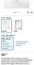 Specchio Parete Rettangolare con Ganci, Specchio da Camera in Vetro e MDF, 60x80 cm, Bianco