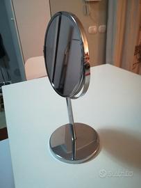 Specchio Trucco da Tavolo Bifacciale, Specchio da Bagno Rotazione a 360°, Bordo e Supporto Cromato.