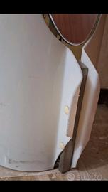 Iconico specchio “Unghia”, conosciuto anche come “Lipstick”, attribuito a Rodolfo Bonetto e realizzato negli anni ’70. Un autentico esempio di design italiano del modernariato, caratterizzato da una forte presenza scenica e da una forma immediatamente riconoscibile. Oggetto originale d’epoca, ideale come complemento d’arredo per interni vintage, contemporanei, showroom o progetti di interior design. 🪞 DESCRIZIONE Specchio a figura intera con forma ellittica e struttura originale in PVC bianco. Base circolare integrata. Design iconico anni ’70, sempre più ricercato nel mercato del modernariato. ⚠️ CONDIZIONI Oggetto originale con segni del tempo coerenti con l’età. Impianto luce presente ma non funzionante (cavo da ricablare) Piccola rottura nella parte inferiore della base in plastica (vedi foto) Normali segni d’uso sulla superficie, più visibili per il colore bianco Nonostante i difetti, lo specchio è stabile, solido e perfettamente utilizzabile come elemento decorativo o da restauro. ⭐ PUNTI DI FORZA Design originale anni ’70 Attribuzione a Rodolfo Bonetto Icona del modernariato italiano Forte impatto scenografico Oggetto ricercato nel settore design 📍 Ritiro a mano a Milano Prezzo leggermente trattabile 💬 Disponibile per ulteriori foto o informazioni