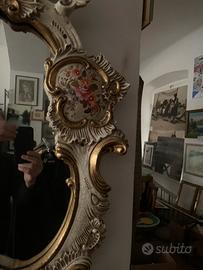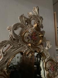 Specchio e consolle Veneziani in ceramica dipinta a mano possibilita di scelta degli anni 40..specchio 65x105h..consolle 75x45h