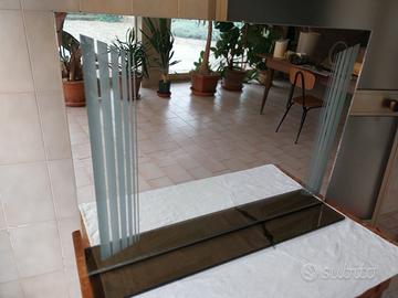 specchio da bagno in cristallo misura lunghezza cm 90 larghezza cm 8 altezza cm 65 luci neon incorporati completo di porta asciugamano porta sapone e porta rotolo carta igienica in cristallo fume'