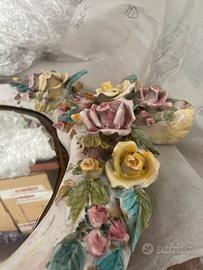 anni ’60, con cornice in ceramica artistica smaltata decorata a mano.
