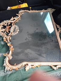 Bellissimo specchio vintage anni 50 con intarsi. Necessita di restauro per un piccolo distacco alla cornice alta. Bello anche da riverniciare argento oppure oro. Valuto offerte.