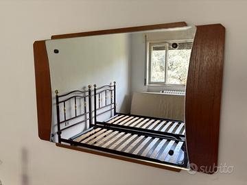 Vendo elegante specchio da parete in stile vintage, con cornice in legno massello e linee classiche anni ’60/’70. Ideale per arredare con gusto ingressi, camere da letto o salotti in stile retrò o moderno con tocchi caldi.