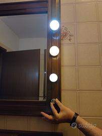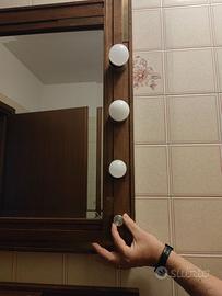 Vendo specchio vintage con luci a intensità regolabile (dimmerabile) con mensola. Struttura in legno. Si presta sia come arredo bagno che come postazione trucco