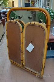 specchio in legno di bamboo, a due ante apribili, 123x80 chiuso, 163x123 aperto impianto luci a tre lampadine. ricevuta di acquisto datata 1984.
