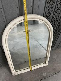 Specchio vintage in legno bianco semicircolare nella parte superiore. Buone condizioni generali Miaure indicative come da foto 70x45 cm Ritiro a mano a Modena/Bologna stazione possibilità di spedizione
