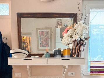 Vendo uno splendido specchio vintage con cornice in legno massello, impreziosito da un intervento di decoupage decorativo che gli conferisce un aspetto unico e molto ricercato.