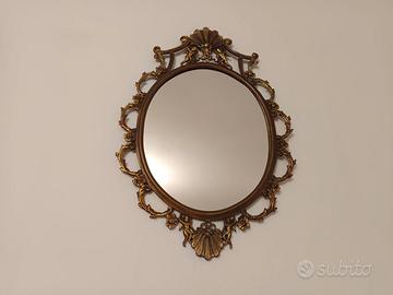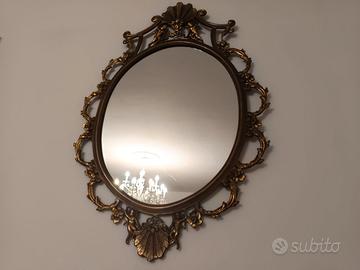 Elegante specchio vintage di dorma ovale in metallo color oro/bronzo. Il fascino del passato per arredare ogni angolo della casa anche in un contesto moderno. Raffinatezza che non passerà mai di moda. Misure 71 x 47