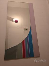 Grande specchio rettangolare da parete, design di Eugenio Carmi, Appartiene alla rinomata serie gli specchi di Carmi' della linea Morphos per Acerbis International risalente gli anni '80 e realizzato in talia. Specchio con intervento di artista in serigrafia policroma. Etichetta ben leggibile sul retro che ne conferma l'autenticità. Ottime condizioni. Misure cm.65x 130x1,5. Non spedisco, consegna diretta personalmente.