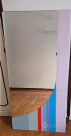 Specchio rettangolare da parete di Eugenio Carmi della linea Morphos per Acerbis risalente agli anni 80. sul retro etichetta che ne conferma l'autenticità. misure cm 65 x 130 x 1,5. Consegna diretta di persona