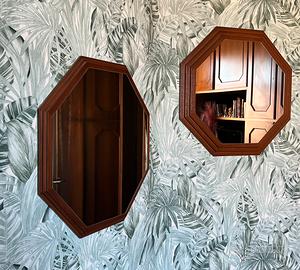 Elegante specchio vintage dalla forma ottagonale, con cornice in legno naturale.