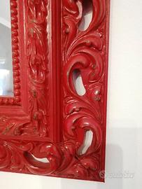 Vendo Specchio con cornice in Legno verniciata rosso 75x125, in ottime condizioni, adatto per camera da letto o bagno in stile particolare, prezzo trattabile