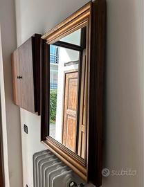 Specchio da parete antico con cornice rettangolare in legno dorata