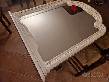 Si vende uno specchio vintage, sia da appoggio, sia da muro... è in legno laccato colore bianco avorio, stile shabby...