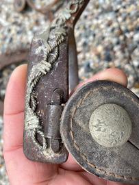 Spettacolare coppia di speroni con lavorazione per stivali e antico ferro di cavallo in ferro .