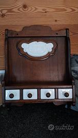 Arte povera di Gianfranco Ballerini in legno da appendere a parete con cassettini in ceramica
