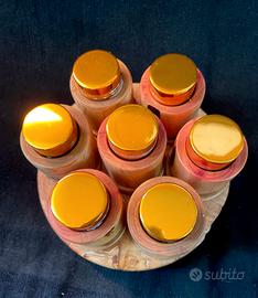 speziera in legno di olivo con barattolini