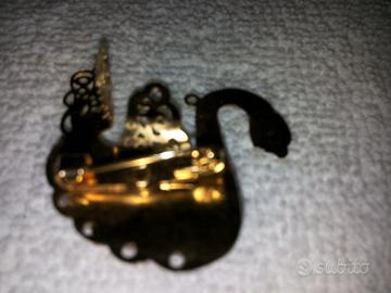 Spilla-Cigno di Alta Bigiotteria con smalti e varie+Spese di Spedizione