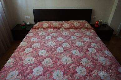 Vendo stupenda camera da letto artigianale disegnata da architetto fatta su misura causa cambio casa. Composta da armadio bianco traffico opaco con interno arredato con cassetti e mobile settimanale inserito al centro porta tv, letto con cassettone nascosto dai bordi in legno wengè con doghe e comodini e cassettone. Dimensioni come da foto allegata.