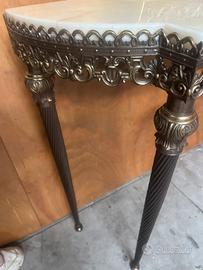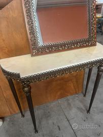 Splendida consolle anni 60 in ferro lavorato, con ripiano in marmo e specchiera impeccabile.