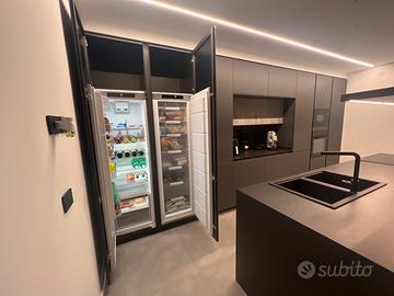 In questa zona sono stati predisposti oer rendere unica questa cucina frigo a colonna, congelatore a colonna (ottima capienza), forno grande e microonde.