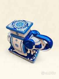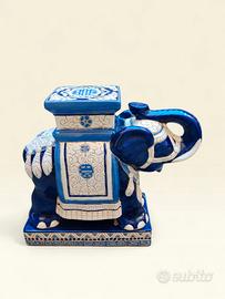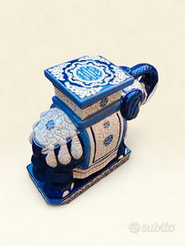 Vendo bellissima scultura in ceramica/porcellana raffigurante un elefante, realizzata nel tradizionale stile cinese "Blue and White" (Blu e Bianco). L'oggetto è un pezzo d'arredo elegante e ricco di significato. L'elefante, simbolo di forza, saggezza e buona fortuna, è raffigurato con la proboscide alzata (gesto che porta prosperità) e indossa una ricca sella decorata con nappe pendenti e motivi floreali. Sul fianco e sulla parte superiore sono visibili caratteri e simboli cinesi augurali (spesso legati alla longevità o alla felicità), inseriti in medaglioni decorativi. La base è rifinita con un elegante motivo geometrico a meandro. Dettagli del prodotto: * Materiale: Ceramica / Porcellana smaltata lucida. * Colore: Intenso blu cobalto e bianco crema. * Stile: Orientale / Tradizionale. * Condizioni: Buone condizioni, integro e senza difetti visibili (contattami per altre foto, se necessarie). * Utilizzo: Ideale come oggetto d'arredo per soggiorno, scrivania, libreria o come regalo di auguri. Perfetto anche per chi segue il Feng Shui. Come il nostro "Liotru", simbolo di Catania, anche questo elefante porta fortuna e saggezza! Mentre il nostro è in pietra lavica, questo prezioso elefantino in ceramica blu porterà eleganza e prosperità orientale nella tua casa. Un piccolo portafortuna tutto tuo! 📦 Spedizione: Imballaggio accurato per garantire l'arrivo integro. 📍 Consegna: Disponibile per spedizione tracciata o ritiro a mano a Catania. 📲 Contattami al 3.4.7-71-40- _2.7.1 Perfetto per chi ama l'arredamento etnico indiano e orientale! Completa la tua casa con statue Ganesha, Buddha, mandala, tessuti batik, tappeti kilim, incenso artigianale, lampade etniche, cuscini ricamati, mobili in teak, decorazioni Bali, arte tribale, oggetti Ayurveda, campane tibetane, thangka, diwan, pouf indiani. Tutto per un arredamento bohémien-chic ricco di spiritualità e fascino orientale.