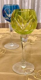 Splendido set vintage anni '90 di 6 calici da vino in cristallo ungherese, dai colori brillanti. Mis. H. cm 21. INFO: 351/3420051
