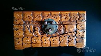 Vendesi splendido antico portagioie in legno tutto intarsiato a mano Misure: 20 x 10 x 10 cm