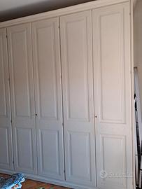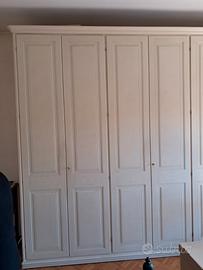 Realizzato con una bellissima finituraanticata, l'armadio si distingue per le sue linee classiche e i dettagli "in stile" che trasmettono calore e prestigio a tutta la stanza. Non è solo un mobile, ma un vero elemento d'arredo che non passa inosservato. 295cm h260cm. in ottime condizioni