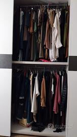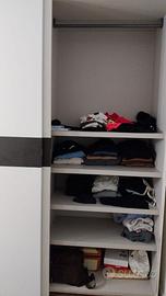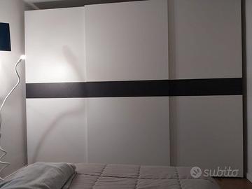 Vendo splendido armadio a tre ante scorrevoli, caratterizzato da un design moderno e minimale con elegante fascia centrale a contrasto. L’armadio è in condizioni impeccabili, senza graffi o segni di usura, ideale per chi cerca massima capienza e stile per la camera da padronale. Dimensioni Extra-Large: Larghezza: 340 cm (molto più capiente degli standard da 3 metri) Altezza: 260 cm Profondità: 65 cm 🛠 Organizzazione Interna (Inclusa!): A differenza dei modelli base, questo armadio è già completamente attrezzato: Modulo 1: Cassettiera interna a 3 cassetti + ripiani + asta appendiabiti. Modulo 2: Molteplici ripiani regolabili per maglioni e scatole. Modulo 3: Doppia asta appendiabiti (superiore e inferiore) per massimizzare lo spazio. Le ante scorrono perfettamente e i materiali sono robusti e di qualità.