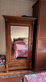 Vendo elegante armadio d'epoca a un’anta in stile Luigi Filippo, realizzato in noce massello. Il mobile è in condizioni eccellenti, sano, pulito internamente e pronto per essere inserito in arredamenti classici o moderni come pezzo di contrasto. Dettagli e Finiture: • Facciata: Grande anta con specchio molato originale perfettamente conservato. • Lavorazione: Cappello a "gendarme" con cornicione lavorato, colonnine laterali intagliate e capitelli geometrici di pregio. • Interno: Dotato di robusti ripiani in legno massello pulitissimi (ideale per biancheria o come dispensa/libreria). • Base: Ampio cassetto alla base con maniglie e bocchetta originali in metallo lavorato. • Accessori: Completo di chiavie originale funzionanti. Misure Precise: • Altezza: 240 cm (pezzo importante e slanciato) • Larghezza: 100 cm • Profondità: 45 cm (media tra corpo e cornicione) Stato: Ottimo stato di conservazione, legno lucido, nessun intervento di restauro necessario. Ritiro: A carico dell'acquirente Nota tecnica per il trasporto: Essendo alto 2,40m, ricorda agli acquirenti che serve un furgone alto (tipo Ducato o simili), perché in una normale monovolume non entra in altezza!