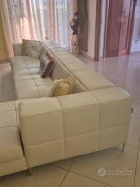 Divani di pelle color crema sartoria italiana Nicoline, buone condizioni con schienale recrinabile