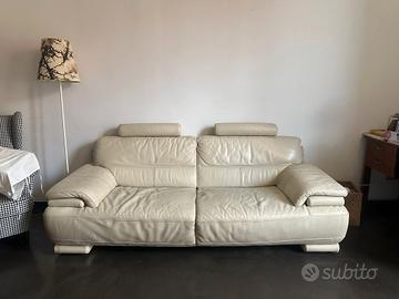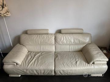 Divano in vera pelle colore crema tenuto benissimo, misure :lunghezza 215 cm,larghezza 95 cm.altezza 75. poggiatesta removibili .Modello Atlantic .Ritiro a carico dell acquirente presso abitazione .