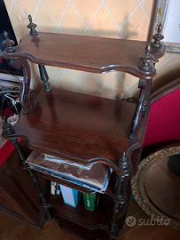 Etagere antico originale, direttorio, colonnine tornite con piccole ruote, altezza totale 120, larghezza 50 cm profondità 34 cm