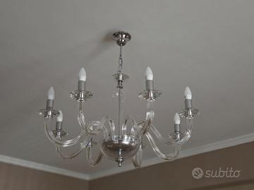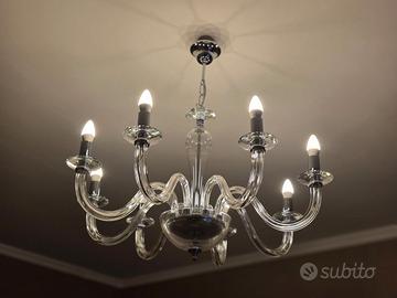 Lampadario 8 Luci in Vetro di murano-Nuovo. Vendo per cambio progetto di arredamento bellissimo lampadario a 8 bracci in autentico vetro di Murano. L’oggetto è praticamente nuovo, installato e mai utilizzato, in condizioni estetiche e funzionali impeccabili. Il design unisce l'eleganza classica della lavorazione artigianale veneziana a una linea pulita e contemporanea, perfetta sia per ambienti moderni che classici (soggiorni, camere da letto o sale da pranzo).