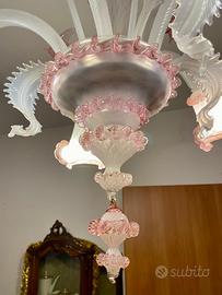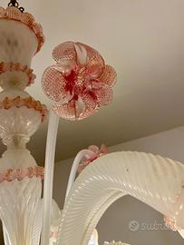 Splendido lampadario di Murano rosa vetro opalino ‘60 color 5 luci
